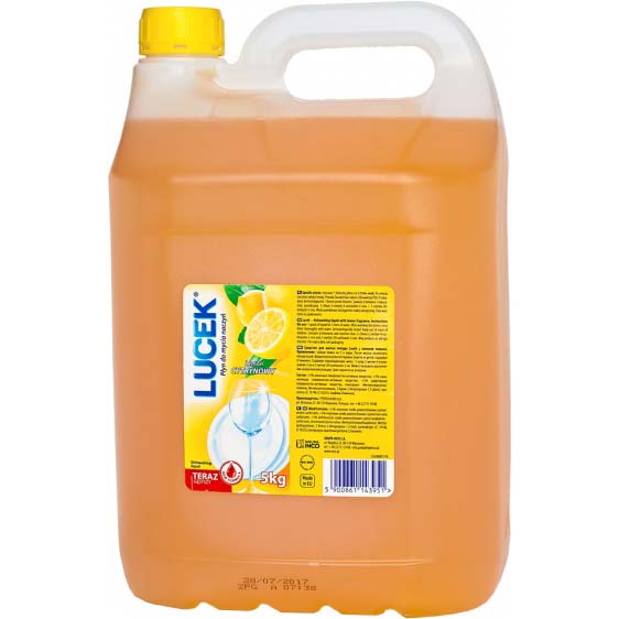 Płyn do mycia naczyń Lucek o odświeżającym, cytrynowym zapachu. To niezastąpiony produkt do  walki z tłuszczem i innymi zanieczyszczeniami pozostałymi na naczyniach po posiłkach. Nie zostawia smug, a dzięki zagęszczonej konsystencji wystarczy na bardzo długo. Duży pojemnik zawiera 5 kilogramów produktu.