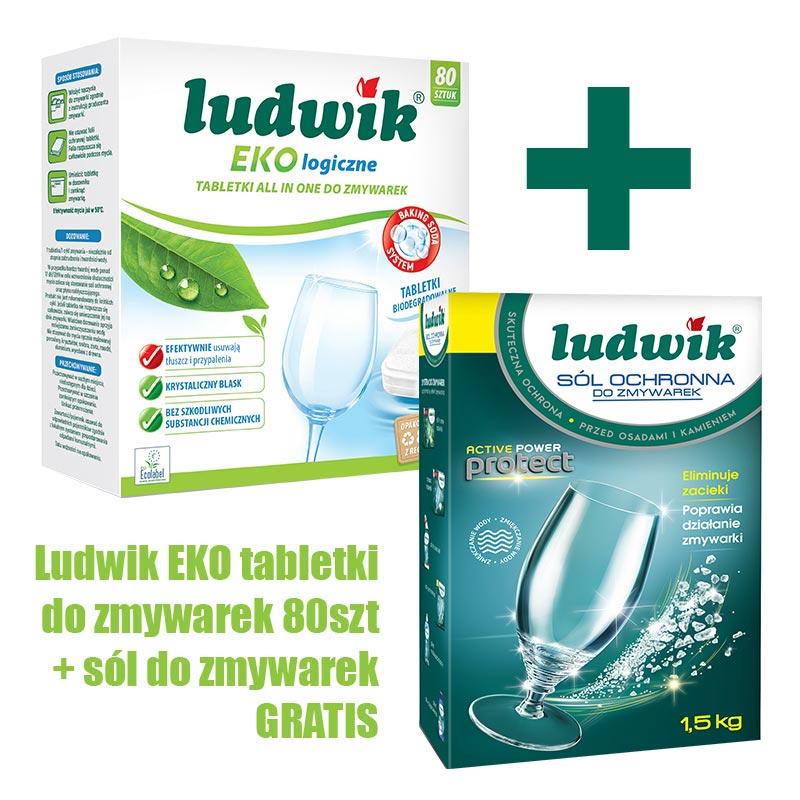 Ludwik pakiet - tabletki do mycia naczyń w zmywarkach Eko 80 sztuk + sól do zmywarek Active Power Protekt 1,5kg