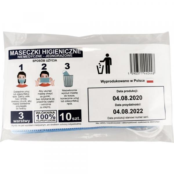 Opakowanie zawiera 10 sztuk jednorazowych maseczek