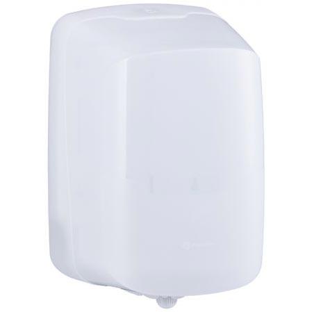 Pojemnik wykonany został z wysokiej jakości tworzywa i posiada specjalną wkładkę dozującą, która uniemożliwia wyciągnięcie długiej wstęgi ręcznika i pozwala na dozowanie go „listek po listku”.