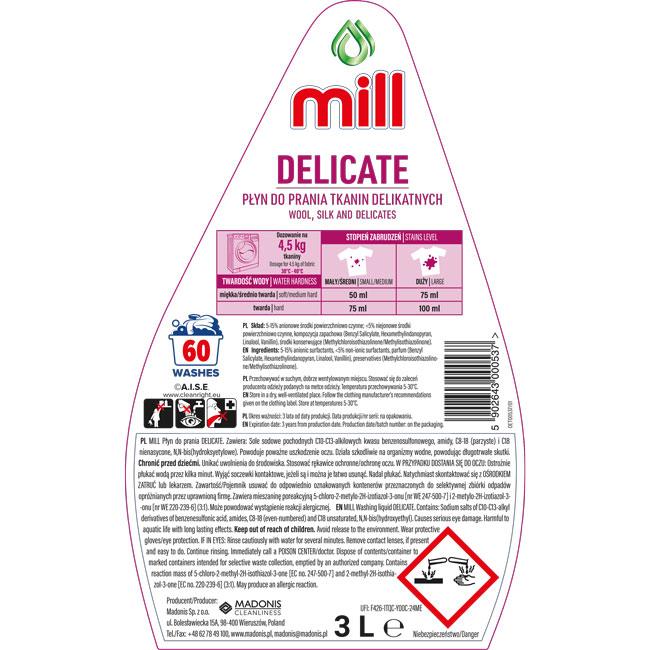 Opis Mill Delicate płyn do prania delikatnych tkanin 3L