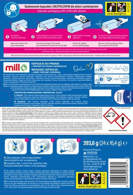 Opis Mill kapsułki uniwersalne 24szt. + perfumy do tkanin Oslo
