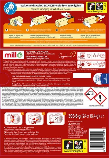 Opis Mill kapsułki uniwersalne 24szt. + perfumy do tkanin Sydney