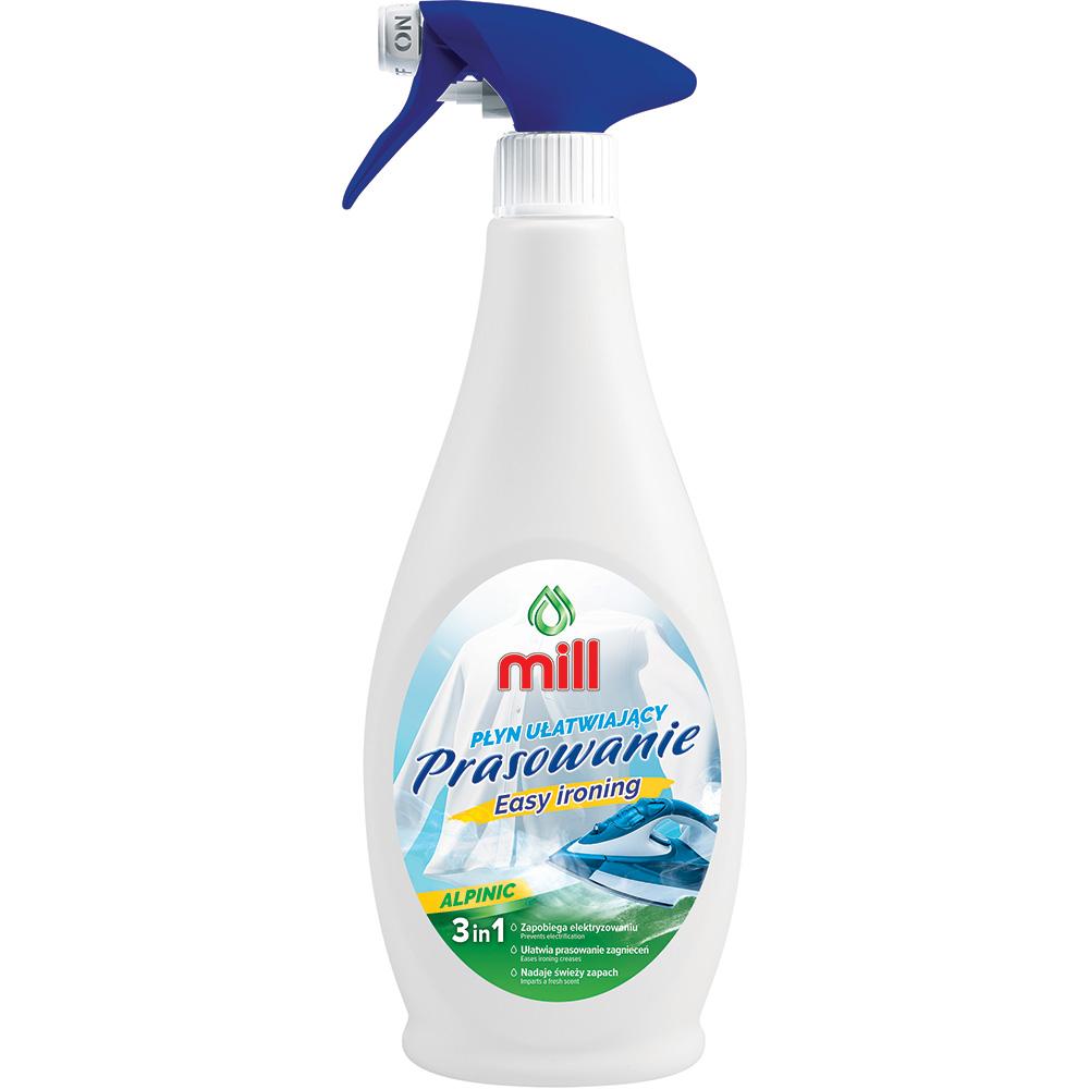 Mill jest marką środków piorących oraz detergentów czyszczących. Wśród bogatego asortymentu, znajdą Państwo płyn ułatwiający prasowanie tkanin Easy Ironing Alpinic.