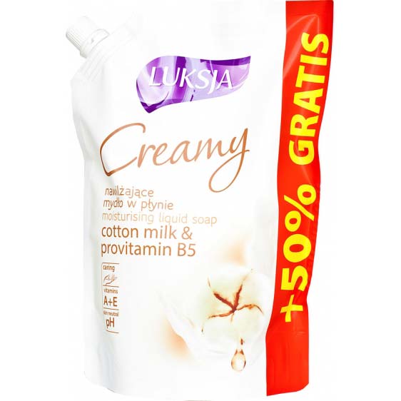 Opis Mydło w płynie Luksja Creamy – bawełna, zapas 400ml + 50% GRATIS