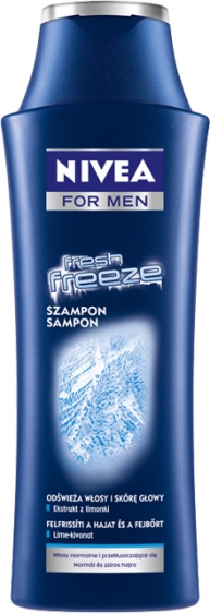 Nivea szampon do włosów Fresh Freeze. Przeznaczony do codziennego stosowania do włosów normalnych i przetłuszczających się. Zapewnia włosom i skórze głowy uczucie chłodzącej świeżości, nie pozostawia osadu na skórze głowy. Pojemność 250ml.