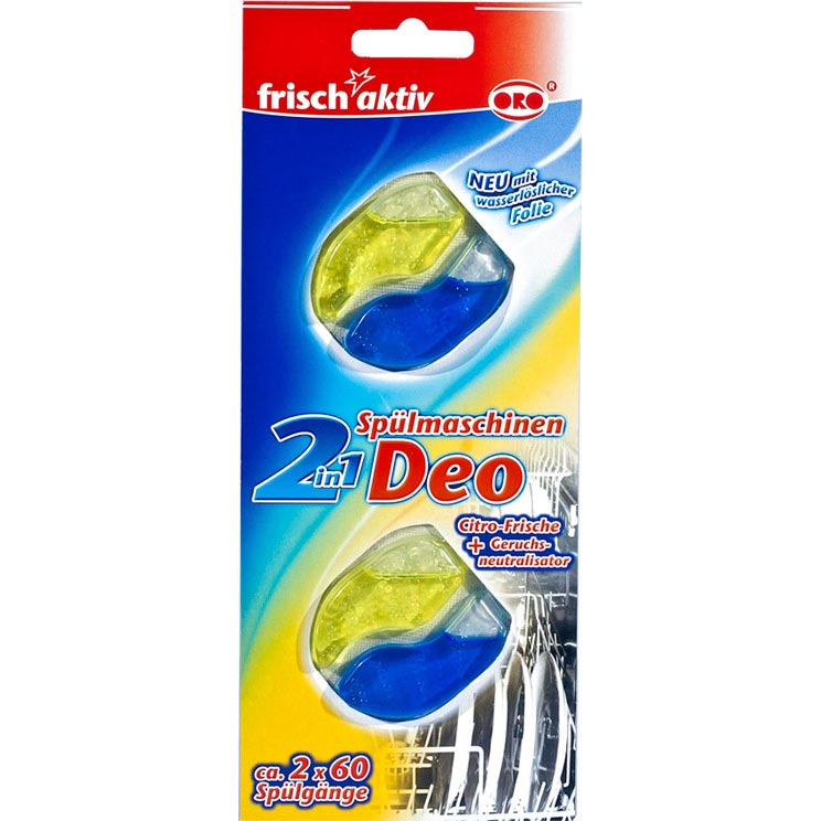 Usuwa przykre zapachy, pozostawia przyjemny cytrynowy zapach. Najlepszym miejscem na odświeżacz jest górny kosz zmywarki lub koszyczek na sztućce. Wydajność jednej zawieszki to ok 60 zmywań.