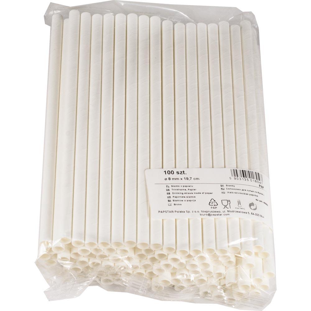 Opis Papstar papierowe słomki białe 100szt. 45668