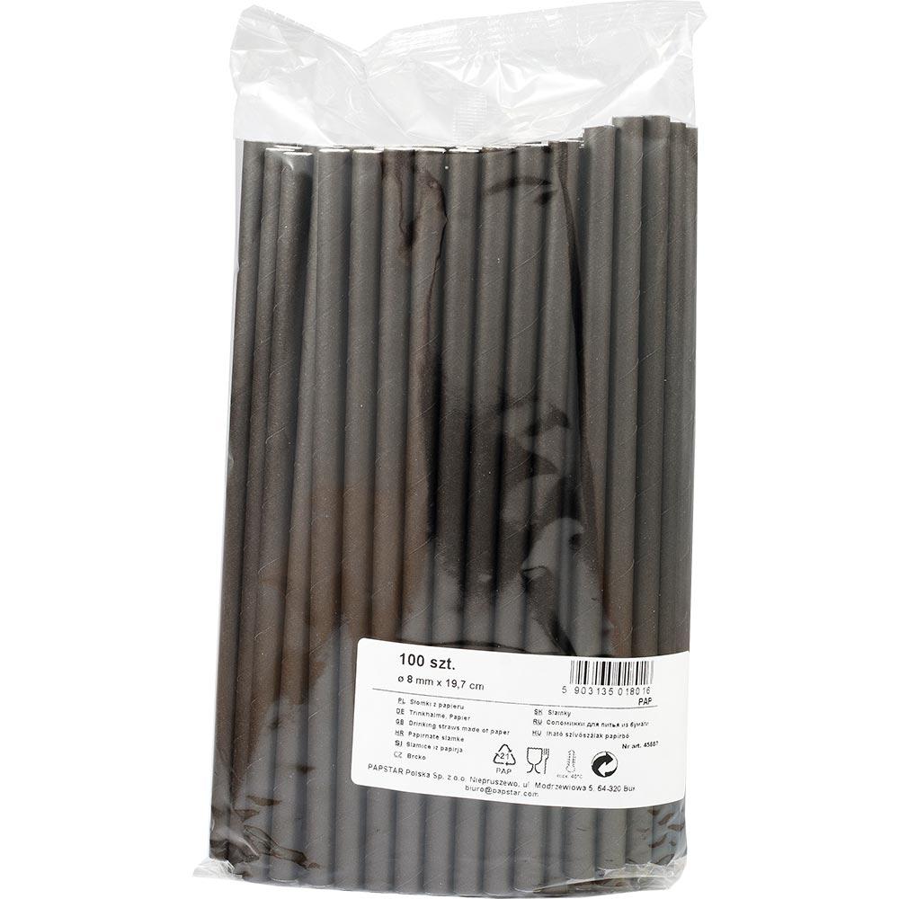 Papstar słomki papierowe 19,7cm czarne 100szt. 45667