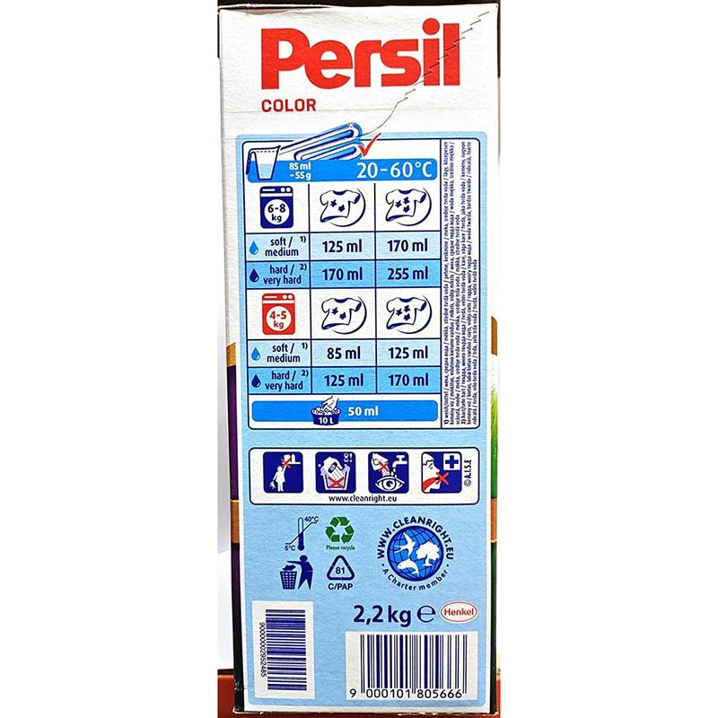 Parametry Persil Deep Clean Color proszek do prania tkanin 2,2kg karton