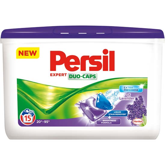 Persil kapsułki do prania. Kapsułki do prania to rewolucyjny środek składający się z enzymu odplamiającego i aktywatora blasku. Dzięki unikalnej formule kapsułek jest bardzo wygodny w użyciu. Wrzucamy kapsułkę do bębna razem z praniem i gotowe. Kapsułka ulega całkowitemy rozpuszczeniu i nie pozostawia żadnych osadów. Pozostawia przyjemny zapach lawendy. Opakowanie 15 sztuk.