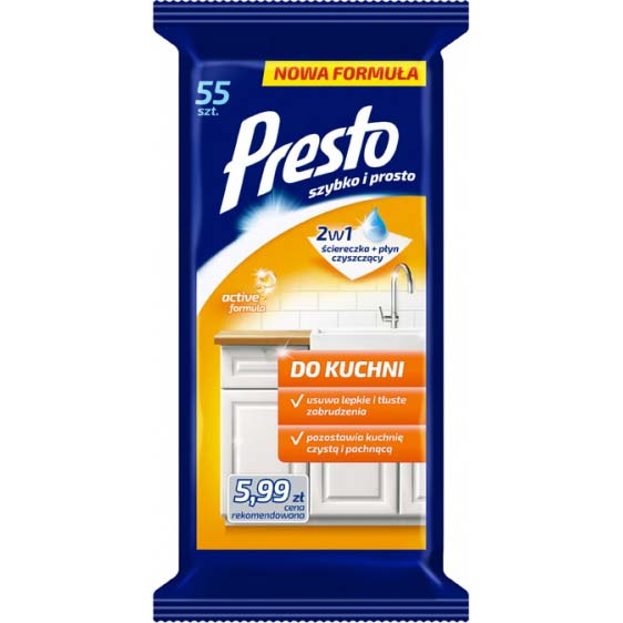 Presto ściereczki nawilżane 2w1 do kuchni 55 szt.