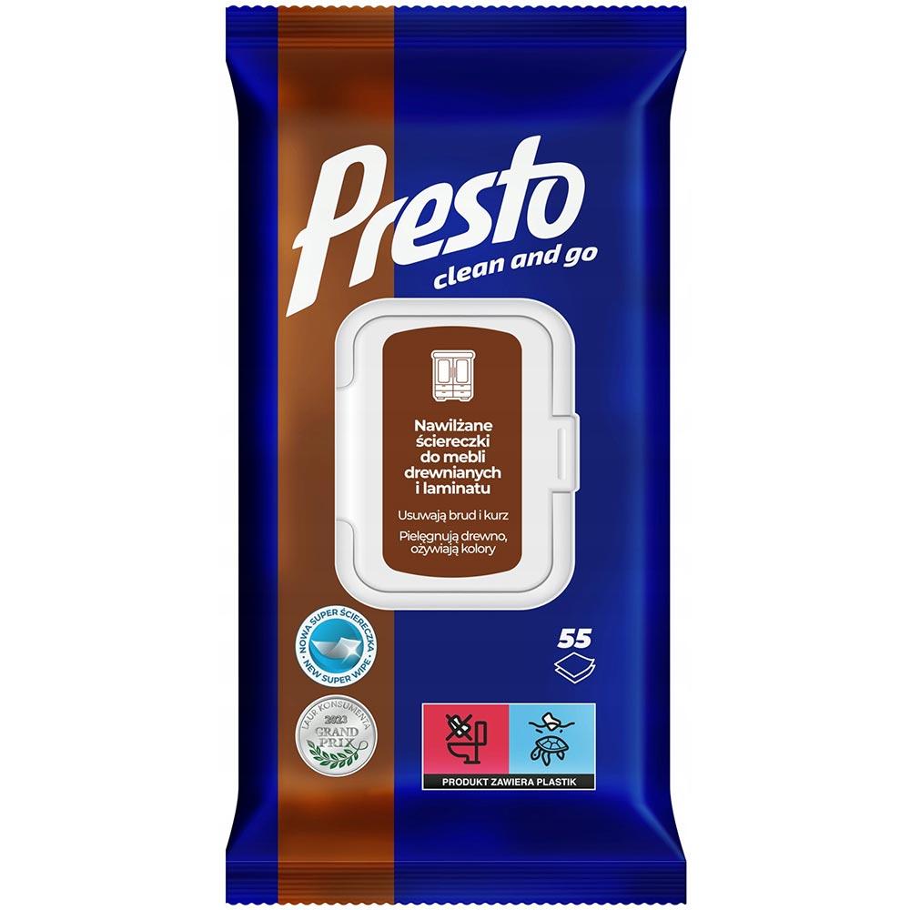 Presto ściereczki nawilżane 2w1 do mebli drewnianych 55szt.