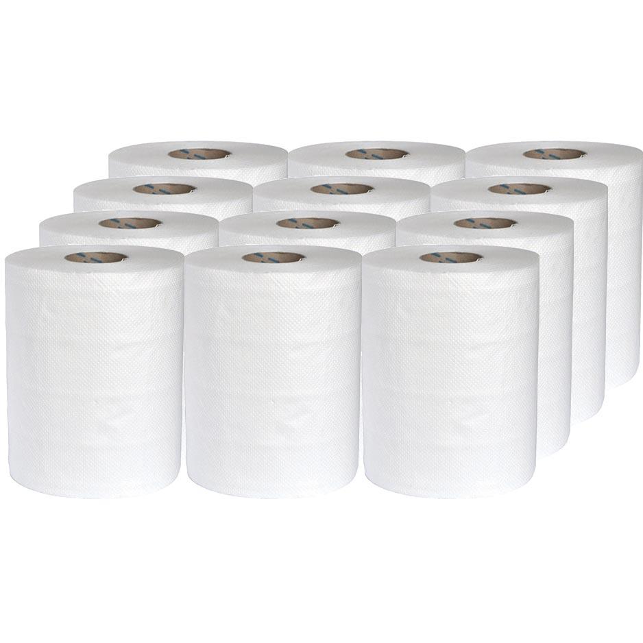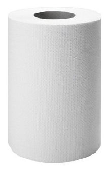 Ręcznik makulaturowy Mini w kolorze białym, 1-warstwowy, gofrowany, dozowany od środka rolki lub z zewnątrz.