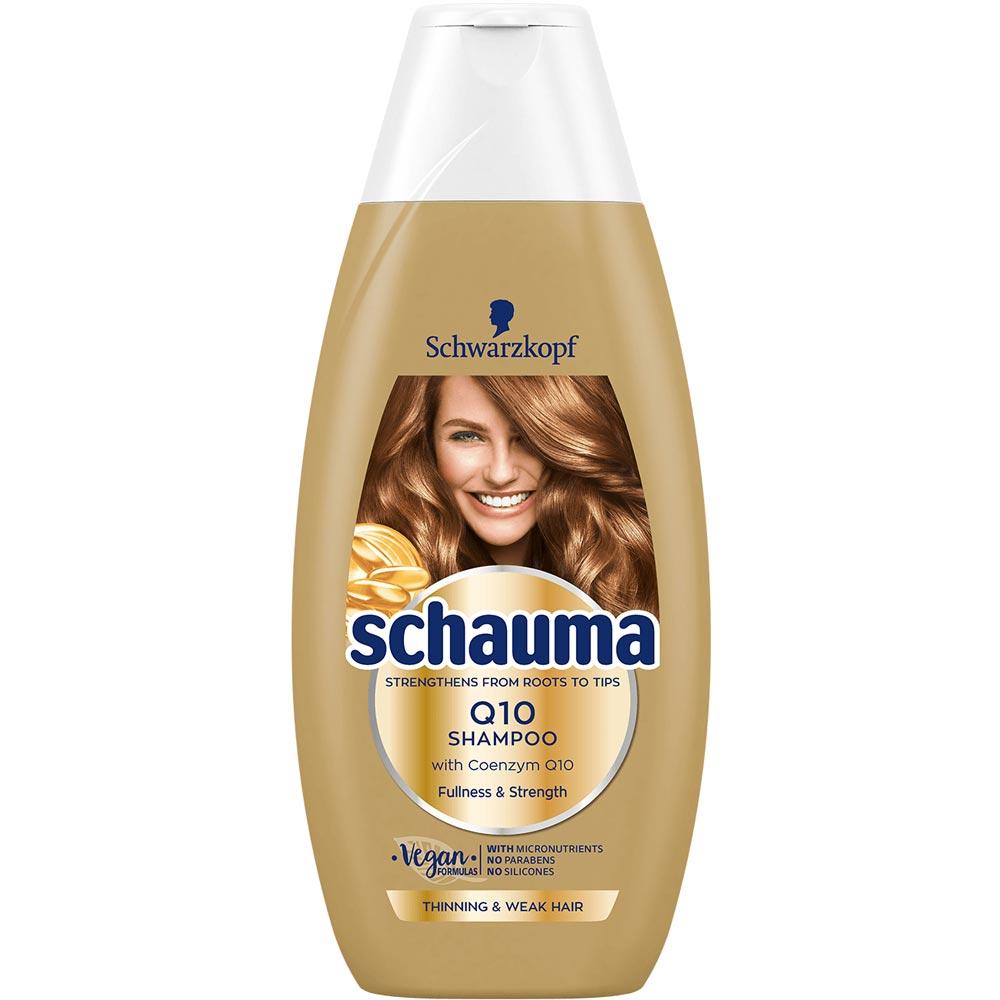 Schauma Koenzym Q10 to szampon polecany dla włosów cienkich wymagających pielęgnacji. Zapewnia 100% siły i promiennego połysku, przywracając włosom zdrowy wygląd. Zawiera koenzym Q10, który pobudza produkcje keratyny, dzięki której włosy nabierają gęstości i stają się bardziej sprężyste. Sprawia, że włosy odporne są na dalsze uszkodzenia zewnętrzne.