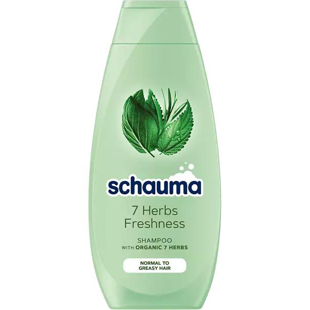 Schauma 7 ziół to oczyszczający szampon do włosów normalnych ze skłonnością do przetłuszczania się. Formuła szamponu składa się z siedmiu ziół (rumianku, szałwii, melisy, skrzypu, chmielu i rozmarynu) oraz kompleksu witamin. Produkt przywraca włosom puszystość i miękkość zapewniając im zdrowy wygląd. Kosmetyk oczyszcza skórę głowy i włosy usuwając tłuste osady i zabezpiecza przed ponownym przetłuszczaniem. Szampon do włosów polecany do codziennego mycia.