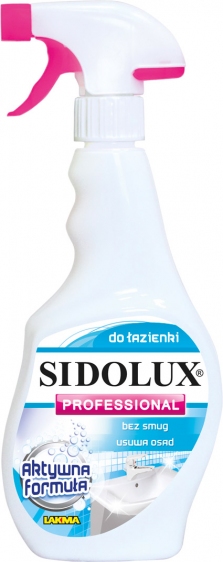 Z Sidoluxem Professional zaoszczędzisz swój czas, bo czyszczenie łazienki będzie o wiele prostsze niż dotychczas. Płyn doskonale radzi sobie z usuwaniem osadów z mydła i kamienia. Nie zostawia smug i nadaje czyszczonym powierzchniom połysk. Wygodny kształt butelki i zastosowanie rozpylacza umożliwiają aplikację preparatu nawet w trudno dostępnych miejscach.