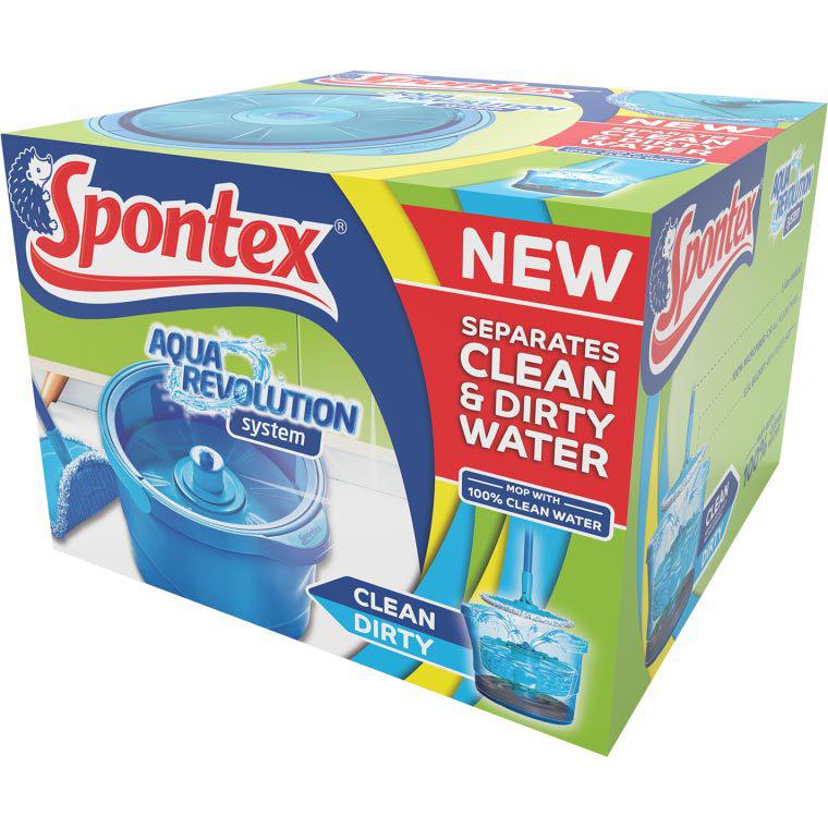 Przed Tobą super wydajny, kompaktowy mop systemowy Spontex Aqua Revolution System. To niezwykły produkt, który zapewni wszelkim powierzchniom olśniewającą czystość w mgnieniu oka.
