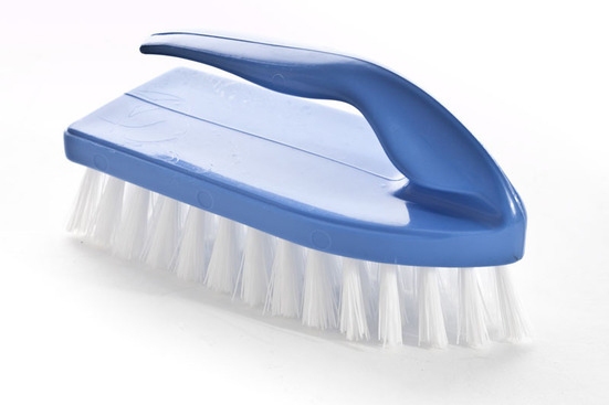 Szczotka żelazko do szorowania różnych powierzchni. Szczotka w kolorze niebieskim z białym synteytcznym włosiem o wymiarach ok. 7 x 16 cm wyposażona w wygodną rączkę ułatwiającą manewrowanie, przednia część szczotki się zwęża dzięki czemu łatwiej dotrzeć do niedostępnych miejsc. Szczotka doskonale czyści podłogi, dywany, tapicerkę itp. Wysoka jakość gwarantuje długotrwałą skuteczność.