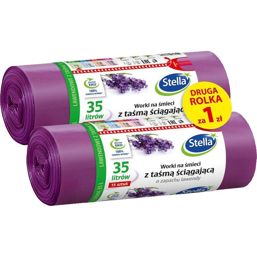 Opis Stella worki na na śmieci z taśmą 35L/15szt. Lawenda + 1 rolka za 1zł