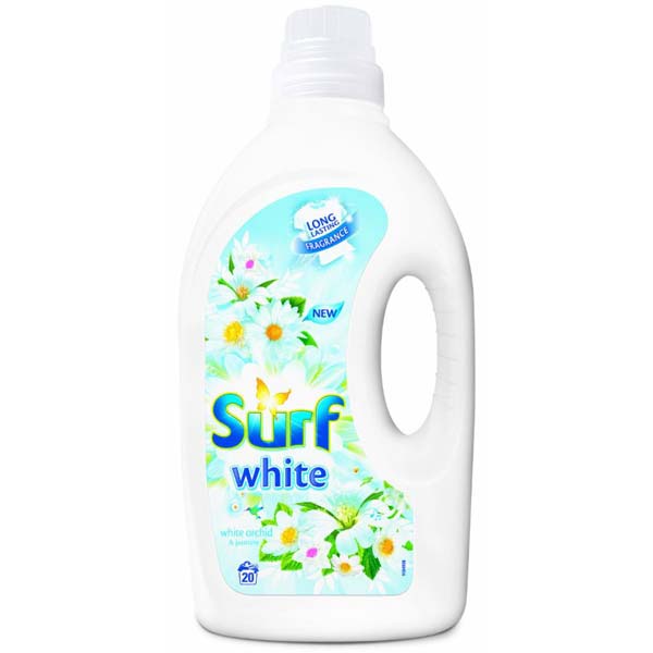 Płyn do prania Surf White sprawi, że ubrania będą śnieżnobiałe. Ich Ich czystość podkreśli wyjątkowe połączenie zapachów białej orchidei i jaśminu. Koncentrat można stosować do prania ręcznego oraz w pralce. Bezpieczny również dla osób o wrażliwej skórze. Wydajny – butelka 1,4 l wystarczy na około 20 prań.