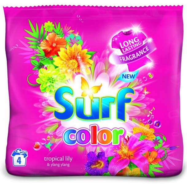 Proszek o wyrazistym i pięknym zapachu kwiatów tropikalnych. Proszek jest przeznaczony do prania tkanin kolorowych (usuwa plamy i chroni kolory przed blaknięciem). Doskonałe efekty gwarantuje producent proszku Surf - koncern Unilever. Mniejsze opakowanie idealne na próbę aby samemu przekonać się o wyjątkowości produktów do prania Surf. Opakowanie zawiera 280g co wystarcza na ok 4 prania.