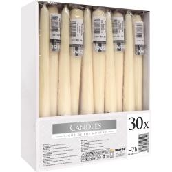 Jasne świece to niezbędne akcesoria w każdym domu. Pełnią funkcję dekoracyjną, ale są także źródłem światła. Można z nich skorzystać zarówno w celu stworzenia wyjątkowego nastroju, jak i podczas awarii prądu. Popularnością cieszy się m.in. zestaw 10 świec stożkowych marki Bispol. Produkt odznacza się bardzo dobrą jakością, został wykonany z niekruszącej się parafiny. Świeca pali się przez ok. 5 godzin, przy paleniu nie wydziela żadnych toksycznych oparów. To znakomity wybór do każdego domu. Ta sama marka proponuje także opakowanie 10 świec w odcieniu ecru. Czas ich palenia dochodzi nawet do 7 godzin. Świeczki nie kapią i nie dymią się. Są bezzapachowe, dlatego doskonale nadają się dla osób, które nie lubią intensywnych aromatów. W ofercie marki Papstar można znaleźć świece stożkowe w zestawie po 50 sztuk. Zbiorcze opakowania są często wybierane przez kawiarnie, hotele i restauracje. Kremowe świece pasują do większości świeczników, dzięki czemu stanowią doskonały element dekoracyjny. W naszej ofercie nie mogło zabraknąć pojedynczych świec. Jeżeli komuś zależy na tylko jednej sztuce produktu, z pomocą służy firma Bispol.