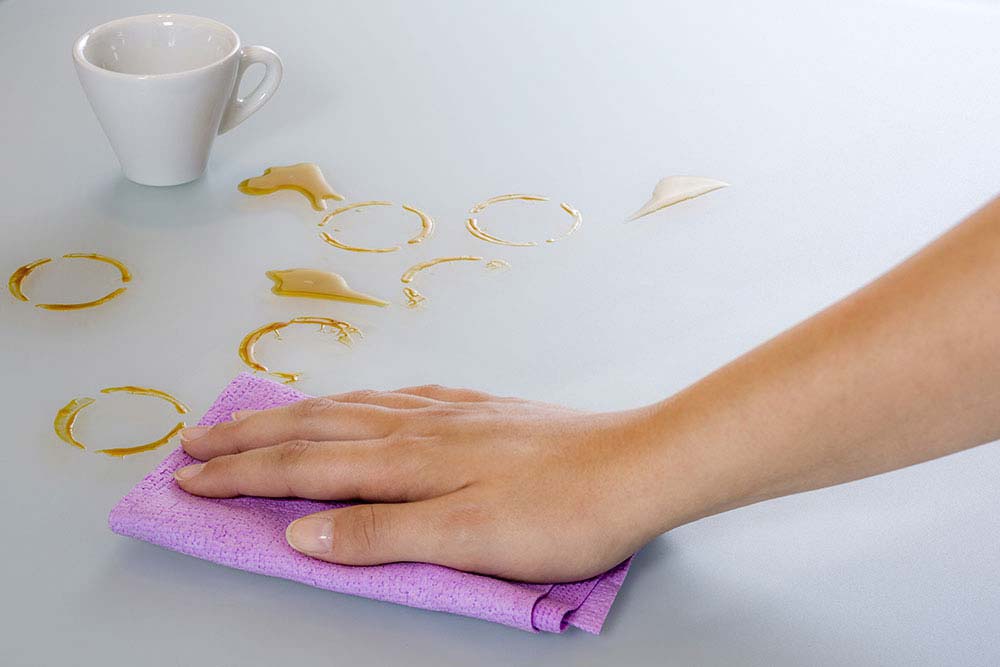 - Poza skutecznym czyszczeniem, ściereczka również poleruje powierzchnie, nie pozostawiając zarysowań oraz nieestetycznych smug i zacieków.