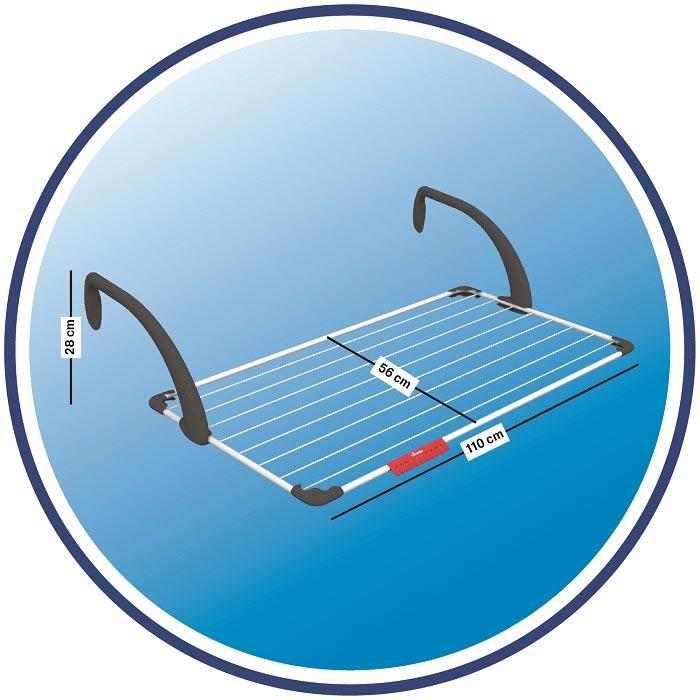 - Wymiary suszarki po rozłożeniu: 110cm x 56cm x 28cm