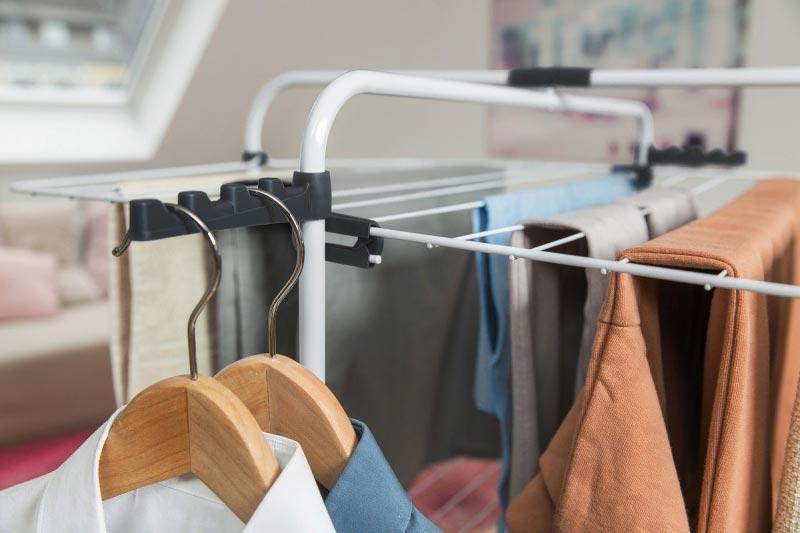 - Suszarka Vileda Level 3 wyposażona została w 2 dodatkowe uchwyty na wieszaki do wieszania koszul, czy delikatnych bluzek.