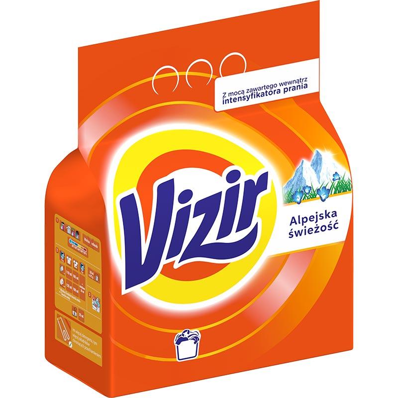 Vizir Alpine Fresh to detergent w postaci proszku do prania, zapewniający olśniewającą czystość białym tkaninom.