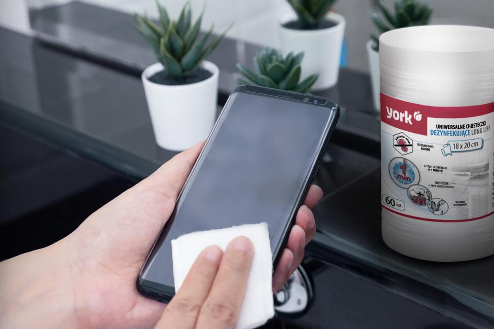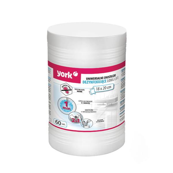 Jednorazowe chusteczki York, przeznaczone do szybkiej dezynfekcji różnych powierzchni, takich jak stoliki, klamki, deski wc, jak również urządzeń elektrycznych codziennego użytku - telefonów, klawiatur, tabletów. Ściereczki posiadają miękką strukturę, nasączone są środkiem o działaniu wirusobójczym z dodatkiem substancji zapachowej, dzięki czemu są przyjemne w użyciu. Chusteczki oferowane są w praktycznej plastikowej tubie, która posiada szczelne zamknięcie, zapobiegające wysychaniu. Produkt można stosować w domu jak i w podróży. Polecany również do salonów kosmetycznych, SPA oraz gabinetów medycznych.