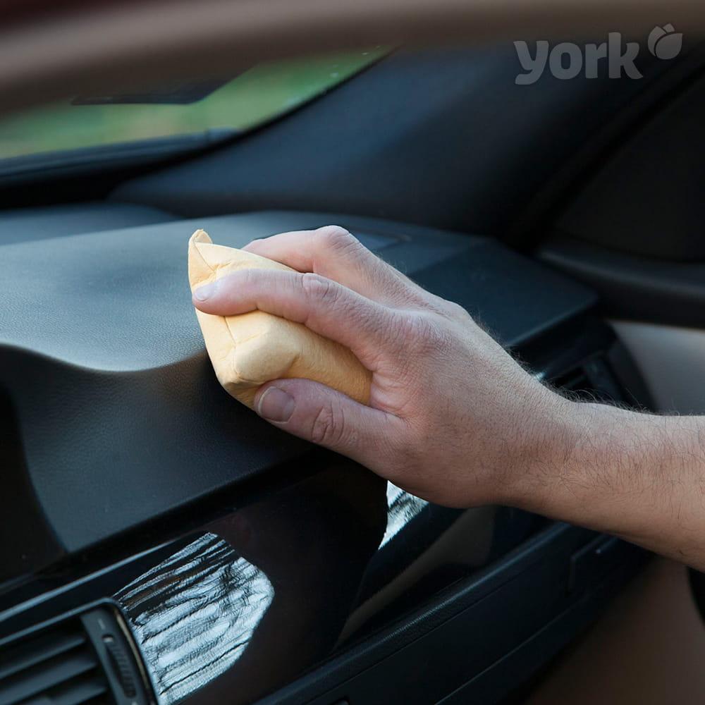 Gąbka York przeznaczona głównie do auta, doskonale usuwa parę wodną nagromadzoną na szybie i lusterkach. Nieduży, kompaktowy rozmiar sprawia, że jest bardzo poręczna i można ją ukryć w schowku w drzwiach samochodu. Gąbka ma konstrukcję miękkiej poduszki powleczonej gładką warstwą z mikro-wiskozy, dzięki czemu nie pozostawia smug ani zacieków. Znakomicie nadaje się również do czyszczenia i polerowania kokpitu.