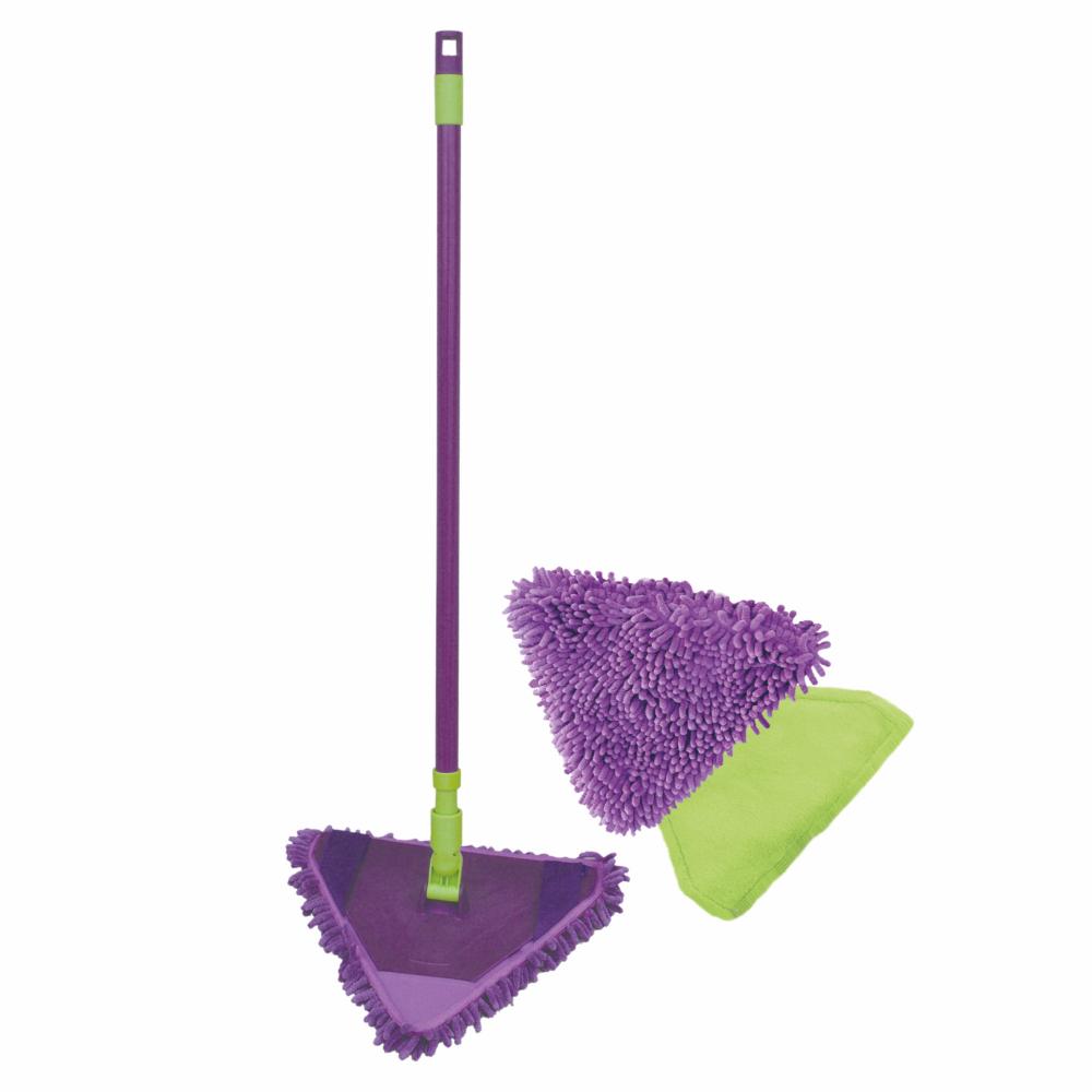 Wygodny i uniwersalny mop trójkątny York, zapewniający idealną czystość na każdej podłodze, nawet w trudno dostępnych obszarach między meblami. Mop składa się z aluminiowej, trójkątnej płytki, ruchomego (łamanego) w każdym kierunku trzonka oraz dwóch nakładek z chłonnych mikrowłókien (jedna gładka, druga z wypustkami). Nakładki są mocowane do stelaża przy pomocy rzepu, co zapobiega obluzowaniu ich podczas pracy. Każdą końcówkę można uprać bez dodatku zmiękczacza w temperaturze do 60 stopni C. Mopem można zmywać różnego rodzaju powierzchnie również bez użycia chemii, stosując jedynie czystą wodę, co sprawia, że produkt jest polecany osobom z alergią na detergenty. Mop trójkątny idealnie nadaje się do podłóg z paneli, kamienia i terakoty, pcv czy linoleum.