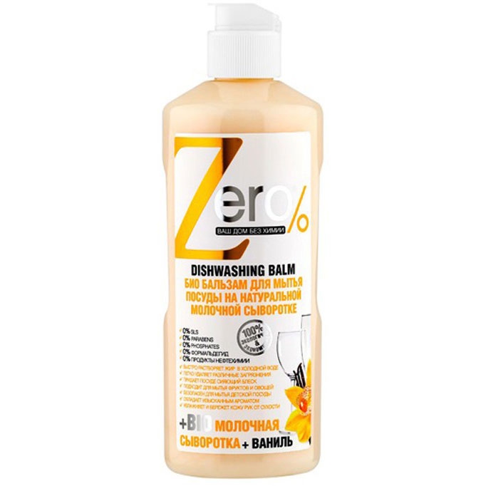 Użycie naturalnych składników w płynie do naczyń ZERO sprawia, że możesz go używać również w przypadku naczyń dziecięcych, a nawet do mycia owoców i warzyw. Płyn wytwarza pianę, która skutecznie usuwa tłuszcz i inne zabrudzenia, nawet jeżeli do zmywania używasz zimnej wody. Zawiera serwatkę mleczną, która dba, by Twoje dłonie były nawilżone. Zapach waniliowy.