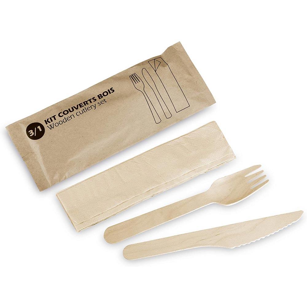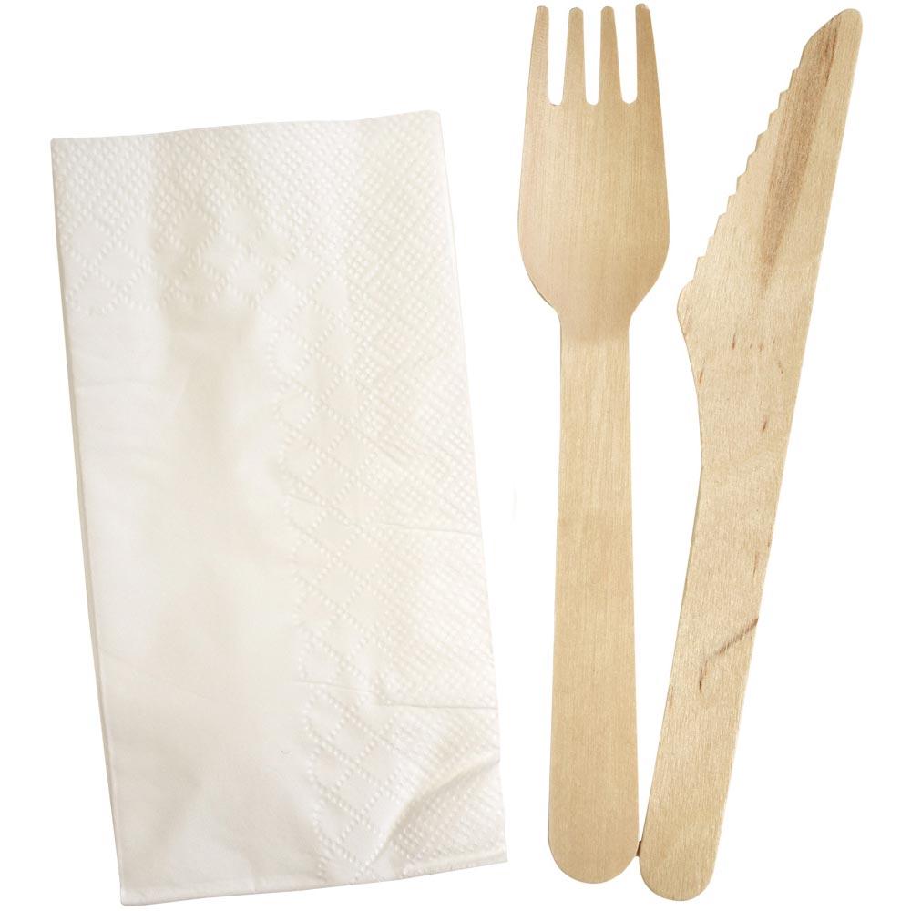 Zestaw sztućców drewnianych KITBOIS3 widelec+nóż+serwetka 100szt.